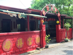 「無極慈母宮」外觀;神桌下繪日本國旗處原為防空洞出入口