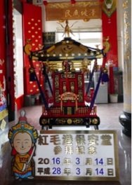 保安堂及神明、神艦與神轎,神轎前每天標示的日期使用西元及日本紀年。