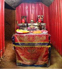 新建中的龍安寺,左下角為先鋒祠(左圖)、先鋒祠內部(右圖)