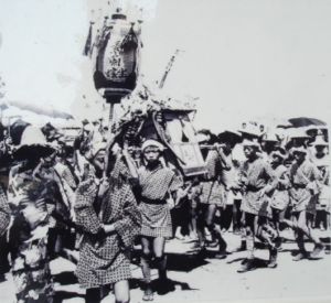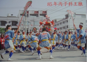 1970年代灣裡御輿團(左圖)、1996年灣裡御輿團(右圖)